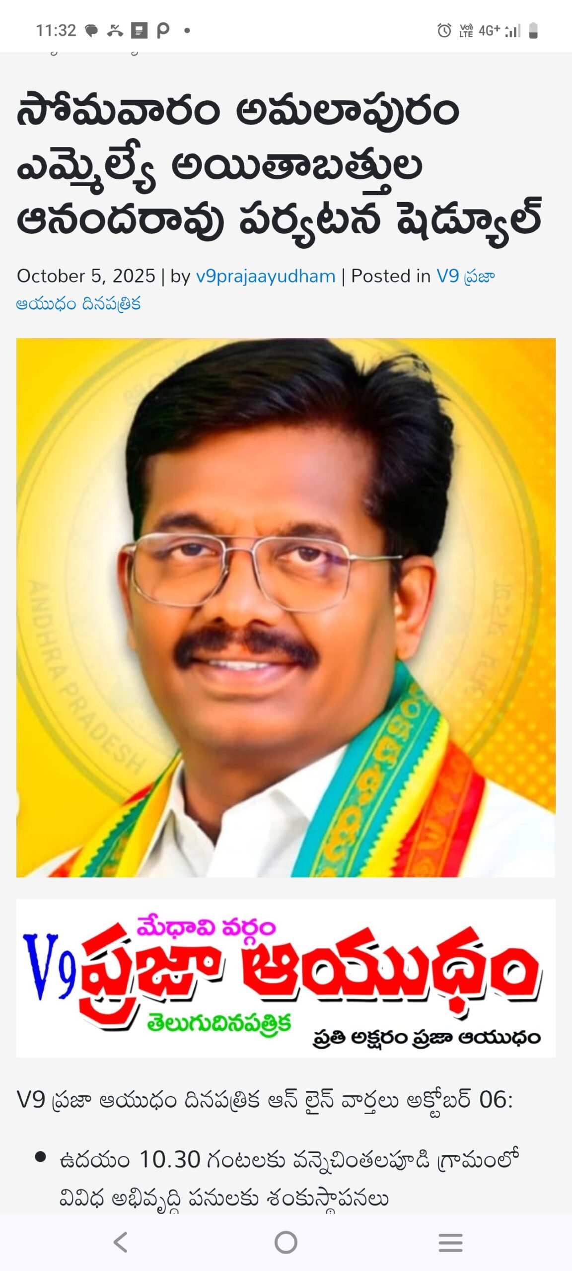 V9 ప్రజా ఆయుధం దినపత్రిక ఆన్ లైన్ వార్తలు-అయినవిల్లి అక్టోబర్ 18: పి.గన్నవరం నియోజకవర్గం అయినవిల్లి గ్రామ సచివాలయం ఆవరణoలో గ్రామీణ భాగస్వామ్య విశ్లేణాత్మక తులనం శనివారం నిర్వహించారు. ఈ కార్యక్రమంలో భాగంగా గ్రామ […]