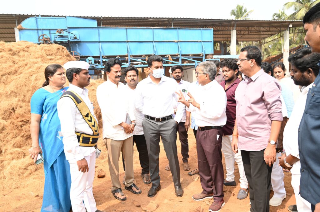ఈ యొక్క యూనిట్ను రైతు ఉత్పత్తిదారుల సంఘాలు సమిష్టిగా మరింత పురోగ మించే విధంగా ఉన్నత స్థాయికి తీసుకుని వెళ్లాలని జిల్లా కలెక్టర్ ఆకాంక్షించారు. జిల్లా పరిశ్రమల కేంద్రంలో అమలు చేయబడుతున్న స్ఫూర్తి పథకం ద్వారా సుమారు 5 కోట్ల అంచనా వ్యయంతో ఈ కొబ్బరి ముడిసరుకుతో తయార వుతున్న ఉత్ప త్తుల పరిశ్రమ నెలకొల్ప బడిందని జిల్లా ఉద్యాన అధికారి బివి రమణ జిల్లా కలెక్టర్ వారికి వివరిం చారు ఈ పెట్టుబడి వ్యయం లో 90 శాతం రాయితీని జిల్లా పరి శ్రమల కేంద్రం అందిం చిందని తెలిపారు మొక్కల పెంపకానికి మట్టిని ఉప యోగించకుండా ఈ యొక్క కొబ్బరిపొట్టుతో తయారు చేసిన ఇటుకలను దుబాయ్ వంటి ప్రాంతాలలో మొక్కల పెంపకానికి మట్టికి బదులుగా ఇటుకలను వినియోగిస్తారని ఆయన తెలిపారు ఈ ఇటు కల ఎగుమతికి మంచి డిమాండ్ ఉందన్నారు. జియో టెక్స్టైల్ మ్యాట్లు ను రోడ్ల నిర్మాణంలో లేయర్ల మధ్య పటిష్టతకు బలోపేతానికి వినియోగిస్తారన్నారు, కొబ్బరి తాళ్లు బొమ్మల తయారీకి స్థానికంగా ముడిసరుకు లభ్యమవుతుందన్నారు ఈ యొక్క కార్యక్రమంలో గ్రామ సర్పంచ్ గుమ్మడి ప్రసాద్ కోబ్బరి రైతుల ఉత్పత్తిదారుల కంపెనీ చైర్మన్ గణపతి వీర రాఘవులు, డొక్కా ఆది నారాయణ ముత్యాల జమీలు పరిశ్రమల కేంద్రం ప్రతినిధి మాధవి, స్థాని క పంచాయితీ అధ్యక్షులు ప్రసాద్ రైతు ఉత్పత్తి దారుల సంఘాల సభ్యులు తది తరులు పాల్గొన్నారు.