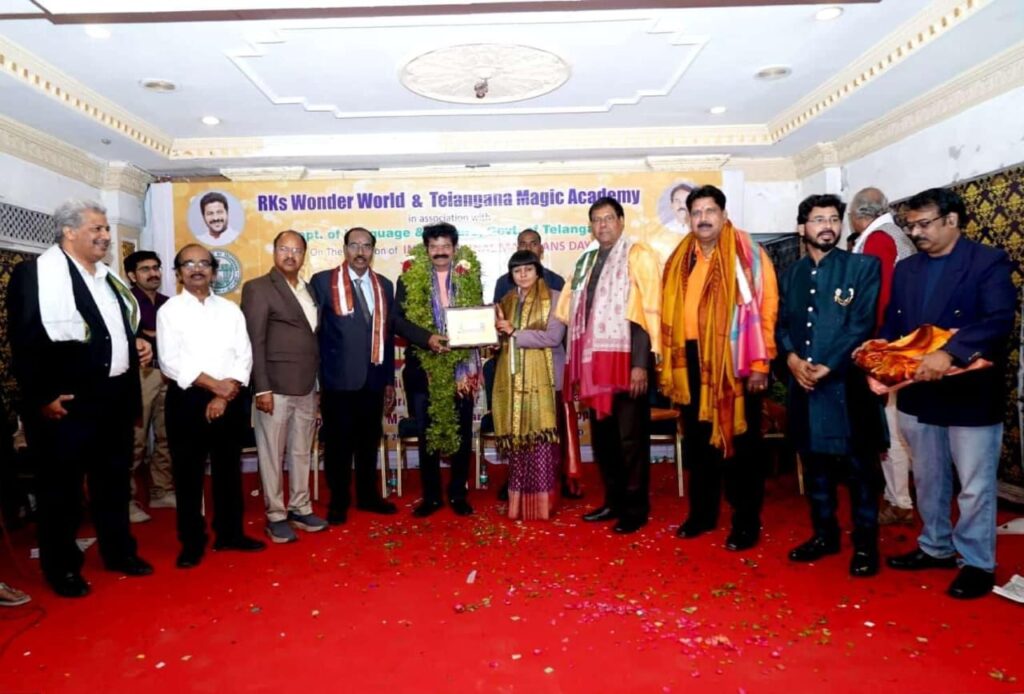 ప్రముఖ ఇంద్రజాలికులు, బహుముఖ ప్రజ్ఞాశాలి మేజిక్ రాజాను మరో అవార్డు వరించింది. ఇప్పటికే లెక్కకు మిక్కిలి అవార్డులు.. సన్మానాలు-సత్కారాలు అందుకున్న మేజిక్ రాజా ఖాతాలో మరో అవార్డు చేరింది. దాదాపు నాలుగు దశాబ్దాలుగా ఇంద్రజాలికునిగా, కవిగా, వ్యాఖ్యాతగా, నటుడిగా, వెంట్రిలాక్విస్ట్ గా బహుముఖ ప్రజ్ఞాశాలిగా ప్రతిభ కనబరుస్తూ.. ఇంద్రజాల రంగానికి విశిష్ట సేవలు అందించినందుకుగాను అతిథులు మేజిక్ రాజాను గజమాలతో ఘనంగా సన్మానించి, పీసీ సర్కార్ (సీనియర్) మెమోరియల్ అవార్డును అందజేశారు. ప్రపంచ ప్రఖ్యాత ఇంద్రజాలికులు పిసి సర్కార్ (సీనియర్) జయంతిని పురస్కరించుకుని తెలంగాణ రాష్ట్ర భాషా సాంస్కృతిక శాఖ సహకారంతో ఆర్కే వండర్ వరల్డ్, తెలంగాణ మేజిక్ అకాడమీ సంయుక్త ఆధ్వర్యంలో హైదరాబాద్ రవీంద్రభారతిలో గురువారం రాత్రి అత్యంత ఘనంగా నిర్వహించిన వరల్డ్ మెజీషియన్స్ డే వేడుకలలో..హైకోర్టు న్యాయమూర్తి సూరేపల్లి నంద, ప్రముఖ జాతీయ, అంతర్జాతీయ ఇంద్రజాలికులు బీవీ పట్టాభిరాం, మేజిక్ స్టార్ బోస్, సీవీ రమణ, మర్రి రమేష్, స్టిక్ మనోహర్, నాగేశ్వర్ రావు, జీ.రఘుబాబు, డా. రమ్యశ్రీ, ఆంజనేయులు, కళ్యాణ్, ఫణిమాధవ్ కస్తూరి తదితరులు మేజిక్ రాజాను గజమాలతో ఘనంగా సన్మానించి, పీసీ సర్కార్ (సీనియర్) మెమోరియల్ అవార్డ్ ను అందజేసి, అభినందించారు. కాగా ఉభయ తెలుగు రాష్ట్రాలలో పలువురు ప్రతిభావంతులు, సీనియర్ ఇంద్రజాలికులను ఈ అవార్డుకు ఎంపిక చేయగా.. గోదావరిఖనికి చెందిన మేజిక్ రాజాకు చోటుదక్కడం విశేషం. ఈ సందర్భంగా రాజా మాట్లాడుతూ భారతీయ ఇంద్రజాలాన్ని అంతర్జాతీయ వేదికపై సగర్వంగా నిలిపిన పీసీ సర్కార్ (సీనియర్) పేరిట అవార్డును అందుకోవడం తనకెంతో గర్వంగా ఉందన్నారు. కాగా రాజా అవార్డును అందుకోవడం పట్ల ఉమ్మడి కరీంనగర్ జిల్లా మెజీషియన్స్ అసోసియేషన్, స్మైల్ ప్లీజ్ లాఫింగ్ క్లబ్, రామగుండం కళాకారుల సంక్షేమ సంఘం, నియర్ అండ్ డియర్, రామగుండం ఏరియా యూ ట్యూబర్స్ అసోసియేషన్, గోదావరి సరిగమలు సంస్థల సభ్యులు హర్షం వ్యక్తం చేస్తూ అభినందనలు తెలిపారు.