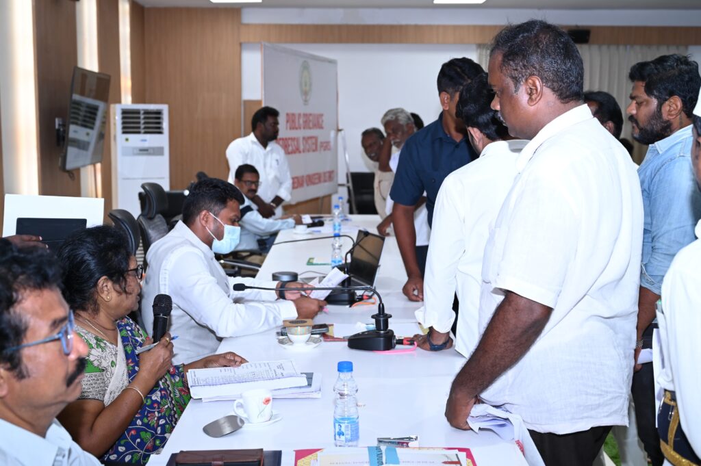 ఈ సందర్భంగా జిల్లా కలెక్టర్ ప్రసంగిస్తూ ప్రజా సంతృప్తే కొలమానంగా ప్రభుత్వం సంక్షేమ కార్య క్రమాలను అమలు చేస్తోందని తెలిపారు. ఒకసారి సమర్పించిన అర్జీ మరలా అదే అంశం పై పునరావృతo కాకుం డా అధికారులు అప్రమ త్తంగా వ్యవహరించాలన్నారు నిర్ణీత సమయం లో ప్రజా ఫిర్యాదుల సమస్యలను పరిష్కరించి గడువు దాటిన అర్జీలు లేకుండా అప్రమత్తంగా వ్యవహరించాలన్నారు ప్రజలకు అందిస్తున్న సేవల్లో భాగంగా ప్రభు త్వం ప్రతిష్టాత్మకంగా నిర్వహిస్తున్న పి.జి. ఆర్.ఎస్ ను నిర్లక్ష్యం చేయకుండా ప్రజలు పెట్టుకున్న ఆర్జీలను, ఫిర్యాదులను నిర్ణీత సమయంలో పరిష్కరి స్తూ సంతృప్తి స్థాయిలను పెంచాలని ఆదేశించారు. ప్రతిరోజు పి.జి.ఆర్.ఎస్ ఫిర్యాదుల కొరకు అధి కారులు, ఉద్యోగులు నిర్ణీత సమయం కేటా యించి వాటిని పరిష్కరించాలన్నారు.