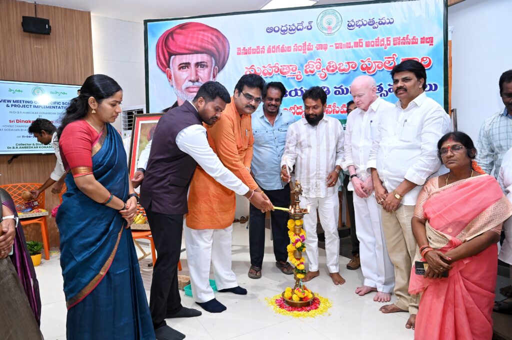 బడుగు వర్గాల ఆశాజ్యోతి, అట్టడుగు వర్గాల అణచివేతకు వ్యతిరేకంగా నిరంతరం పోరాడిన యోధుడు మహాత్మ జ్యోతిభా పూలే ఎందరికో స్ఫూర్తి ప్రదా తగా నిలిచారని 20 సూత్రాల కార్యక్రమాల అమలు కమిటీ చైర్మన్ లంకా దినకర్ పేర్కొన్నా రు. శుక్రవారం జ్యోతిభా ఫూలే 199వ జయంతిని జిల్లా వెనుక బడిన తరగతుల సంక్షేమ శాఖ ఆధ్వర్యంలో స్థానిక డాక్టర్ బి ఆర్ అంబేద్కర్ కోనసీమ జిల్లా కలెక్టరేట్ నందు ఘనంగా నిర్వహించారు.