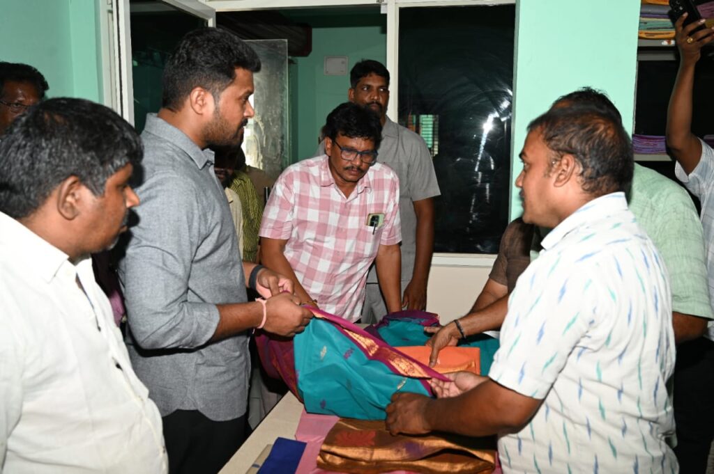 ఈ సంద ర్భంగా ఆయన వివిధ విభా గాలలో నూలు దగ్గర నుంచి చీరలు దుప్పట్లు తదితర వస్త్రాలు తయారీ వరకు వివిధ ప్రక్రియలపై సిబ్బంది ద్వారా తయారీ విధానాలను ఆరా తీస్తూ అన్ని విభాగాల ను పరిశీలించి సంతృప్తిని వ్యక్తం చేశారు ఈ సందర్భంగా ఆయన మాట్లాడుతూ కోనసీ మ జిల్లాలో అన్ని చేనేత సహకార సంఘాల లో తలమానికంగా నిలుస్తూ ఏడాదికి రెండు కోట్ల టర్నోవర్తో ఈ సంఘం నిలవడం అభి నందనీయమన్నారు చేనేత సహకార సంఘాలను ప్రభు త్వ పరంగా రాయితీ లతో ప్రోత్సహించడం జరుగు తుందన్నారు మానవాళికి చేనేత వస్త్రాలను ఇప్పటికీ సాంప్రదాయ బద్దంగా తయారుచేసి అందిస్తున్నారన్నారు.