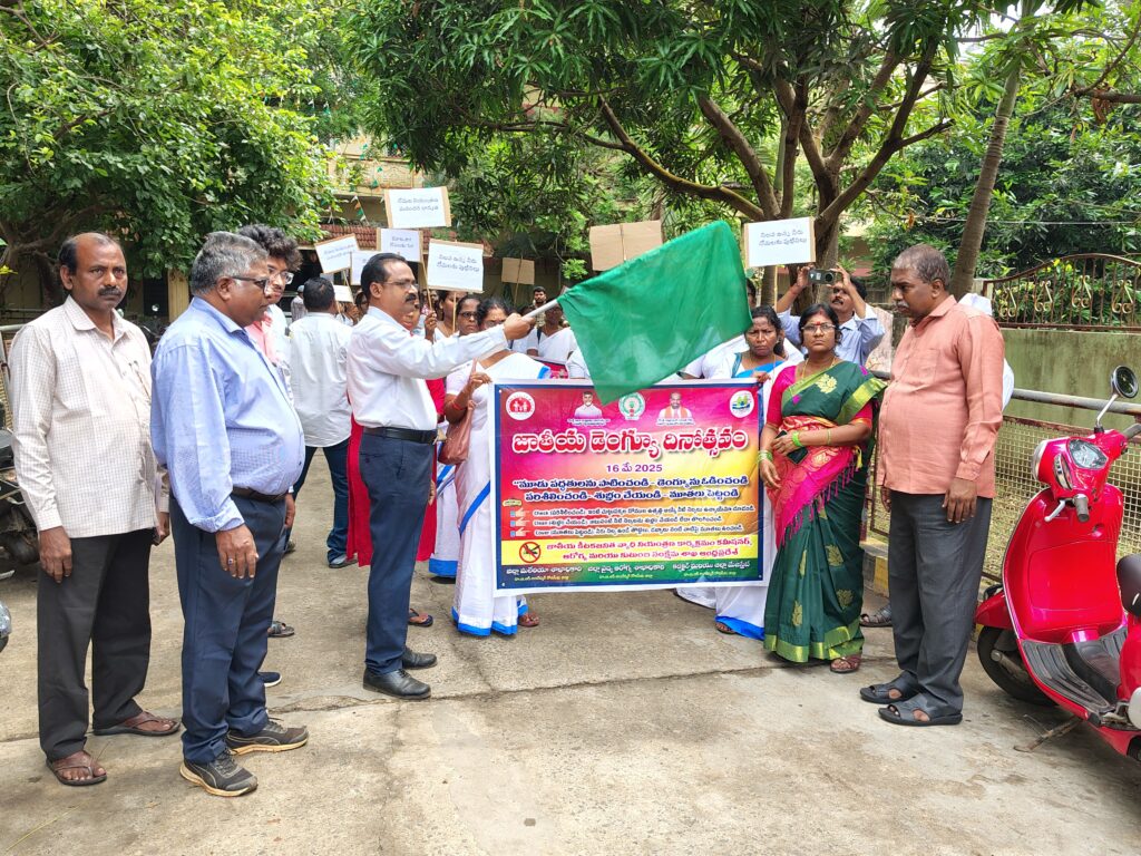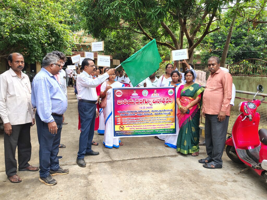 ప్రమాదకర ప్రజారోగ్య సమస్యగా మారిన డెంగ్యూ వ్యాధి పట్ల ప్రజల్లో అవగాహన కల్పించటానికి జాతీయ డెంగ్యూ దినం నిర్వహిం చడం ఆనవాయితీగా మారిందన్నారు. ప్రభుత్వ వైద్య ఆరోగ్య యంత్రాం గం పాత్ర, వైద్య సిబ్బంది అంకిత భావం, వ్యాధి పట్ల ప్రజలకు కనీస అవగాహన కల్పించాల న్నారు, మున్సిపల్ కమిషనర్ కెవిఆర్ రాజు మాట్లాడుతూ పరిసరాల పరిశుభ్రతకు పెద్ద పీట వేస్తూ ప్రజా రో గ్య వ్యవస్థలను బలోపే తం చేయడం. పౌర సమాజాన్ని ఏకీకృతం చేయడం లాంటి లక్ష్యా లను చేపట్టడానికి జాతీయ డెంగ్యూ దిన వేదికలను నిర్వహించా మన్నారు ఈ ఏడాది ప్రారంభంలోనే “డెంగ్యూ నివారణ పరిసరాల పరిశుభ్రత, ఆరోగ్యకర జీవన విధానం” అనబడే ఇతివృత్తాన్ని అంశాన్ని తీసుకొని ప్రచారం చేప ట్టామన్నారు.ప్రజలలో అవగాహన లేమి వాతా వరణ ప్రతికూల మార్పు లు, వర్షాకాల ఆపరిశుభ్ర తలు డెంగ్యూ లాంటి సంక్రమిత వ్యాధులకు తలుపులు తెరుస్తున్నట్లు అవుతుందన్నారు సరైన సమయంలో స్పందిస్తూ పరిసరాల పరిశుభ్రతకు ప్రాధాన్యం ఇవ్వడంతో పాటు పౌర సమాజంలో చైతన్యం తగు రీతిలో కొనసాగితే డెంగ్యూ వ్యాధి కట్టడి సులభం అవుతుందన్నారు. స్వల్ప ఆశ్రద్ద ప్రాణాంతకం కావచ్చునని ఇంటి పరిసరాల పరిశుభ్రత కుటుంబ సమాజ ఆరోగ్య ప్రదాయిని అని తెలుసు కొని వ్యాధి చికిత్స కన్న నివారణ మిన్న అనే నినా దాన్ని గుర్తుంచుకొని మన ఆరోగ్యం కోసం మనమే ప్రతినభూనాలన్నారు.తొలుత మున్సిపల్ కార్యాలయం వద్ద జిల్లా వైద్యాధికారి డాక్టర్ ఎం దుర్గారావు దొర ర్యాలీని ప్రారంభించారు ఈ ర్యాలీ లో రెడ్డి సత్య నాగేంద్ర మణి ,మహిళా ఆరోగ్య కార్యక ర్తలు , ఆశా కార్యకర్తలు, మలేరియా ఫైలేరియా సిబ్బంది ప్లకార్డులు పట్టుకుని మున్సిపల్ కార్యాలయం వద్ద డెంగ్యూ వ్యాధి అంతం మన పంతం అంటూ నినాదాలు చేశారు ఈ కార్యక్ర మంలో ప్రభుత్వ వైద్యాధి కారులు ఎం ఎం మణిదీప్, మలేరియా సబ్ యూనిట్ ఆఫీసర్లు ఎన్ వి రామారావు, ఎస్ రాజబాబు , ఫైలేరియా సూపర్వైజర్ ఎస్ సత్య నారాయణ, హెల్త్ విజిటర్ ఏ లక్ష్మి, జిల్లా మలేరియా ఆఫీస్ సిబ్బంది వై ఆదినారా యణ, ఏ ఆర్ ఎల్ నాగరాజు ,రవి పాల్గొన్నారు