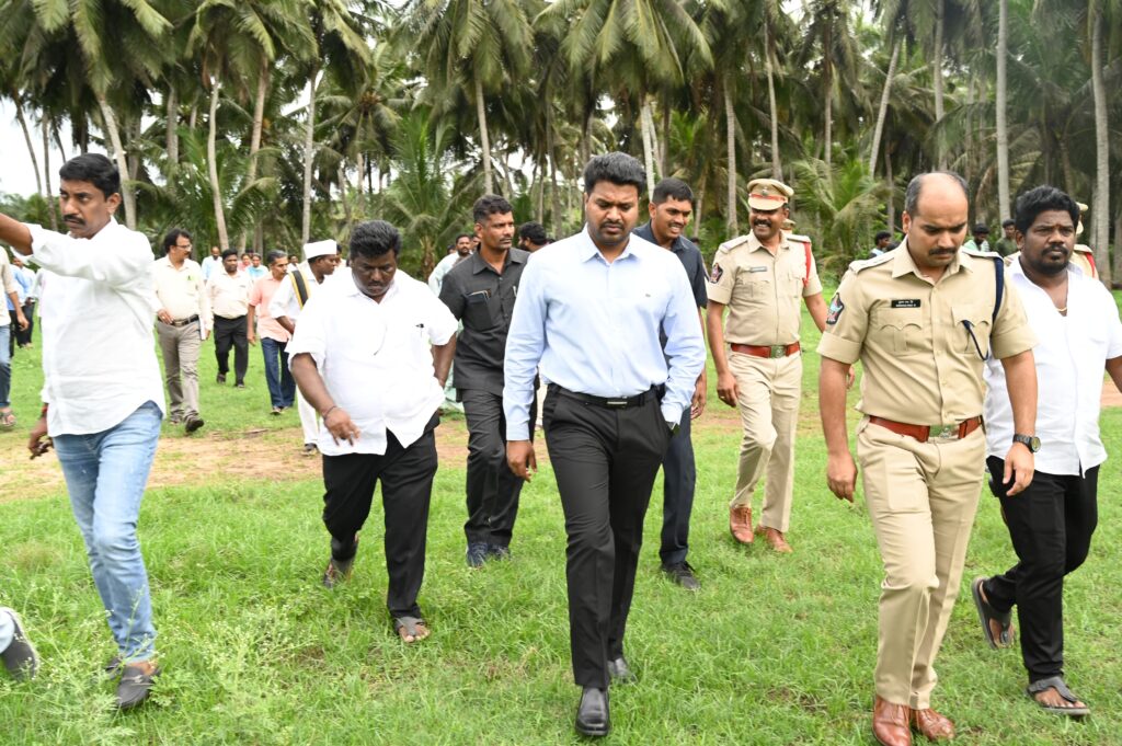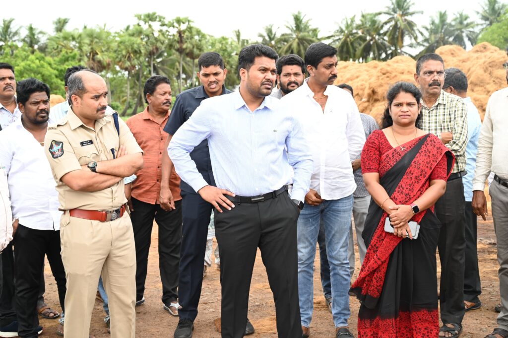 ఈనెల 31వ తేదీ శనివారం రాష్ట్ర ముఖ్యమంత్రి నారా చంద్రబాబు నాయుడు డాక్టర్ బి ఆర్ అంబేద్కర్ కోనసీమ జిల్లా,ముమ్మిడివరం నియోజకవర్గంలో పర్యటించి పలు అభివృద్ధి కార్యక్రమాలకు ప్రారంభోత్సవాలు శంకుస్థాపనలు చేయడంతో పాటు పురోగతిలో ఉన్న ప్రభుత్వ కార్యక్రమాల ను ఆయన క్షేత్రస్థాయిలో పరిశీలన చేయనున్నట్లు జిల్లా కలెక్టర్ మహేష్ కుమార్ తెలిపారు, సోమవారం స్థానిక మండల పరిధిలోని సిహెచ్ గున్నేపల్లి లో ముఖ్యమంత్రి వర్యుల పర్యటన ముందస్తు ఏర్పాట్లకు సంబంధించి హెలికాప్టర్ ల్యాండింగ్ కొరకు హెలిప్యాడ్ స్థలాన్ని జిల్లా కలెక్టర్ ఆర్ మహేష్ కుమార్ నేతృత్వంలోని అధికారుల బృందం తొలుతగా పరిశీ లించింది.