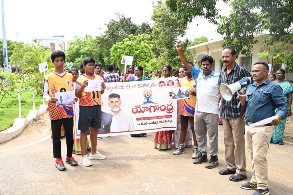 నెల రోజుల పాటు యోగాంధ్ర – 2025 పేరిట విస్తృత ప్రచారం నిర్వహిస్తున్నట్లు తెలిపారు స్వచ్ఛంద సంస్థలు యోగాను ప్రమోట్ చేస్తున్నాయని తెలిపారు. జిల్లా జాయిం ట్ కలెక్టర్ టీ నిషాoతి మాట్లాడుతూ సమాజం లో ప్రతి ఒక్కరు సంపూర్ణ ఆరోగ్యాన్ని ప్రసాదించే యోగాను ప్రమోట్ చేసేం దుకు కృషి చేయాలని కోరారు. యోగ కేవలం వ్యాయామం కాదని శారీరక, మానసిక, ఆధ్యాత్మిక ఆరోగ్యానికి ఎంతో మేలు చేసే ఒక పురాతన అభ్యాసంగా ఉందన్నారు వేల సంవ త్సరాల చరిత్ర కలిగిన యోగా, ఆధునిక జీవనశై లిలో ఎదురయ్యే అనేక సమస్యలకు ఒక అద్భుత మైనపరిష్కారం ఆసనాలనీ శరీరాన్ని సాగదీయడం ద్వారా కండరాలను బలోపేతం చేసి, శరీరానికి స్థిరత్వాన్ని, సమతుల్యతను అందిస్తుందన్నారు.