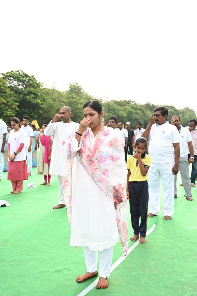 నిపుణులు రూపొం దించిన 45 నిమిషాల నిడివి తో ఉన్న కామన్ యోగా ప్రోటోకాల్ ఆధారంగా యోగాస నాలునేర్పించడం జరిగిందన్నారు యోగాను ప్రతి వర్గానికి చేరువచేయ డంలో సమష్టి భాగస్వామ్యం తో అందరం కలిసి యో గాంధ్రను విజయవంతం చేశారన్నారు. జిల్లా జాయింట్ కలెక్టర్ టీ నిషాoతి ప్రసంగిస్తూ యోగా డేను ఒక్క రోజుకే పరిమితం చేయకుండా యోగా గొప్పతనాన్ని ప్రజలందరికీ వివరించి అన్ని వర్గాల ప్రజలు జీవితంలో యోగా అంతర్భా గం చేసుకోవాలన్నారు.