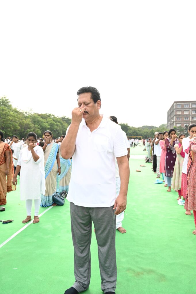శనివారం 11వ అంత ర్జాతీయ యోగ దినోత్స వం వేడుకలలో భాగంగా ఆయన డాక్టర్ బి ఆర్ అంబేద్కర్ కోనసీమ జిల్లా అమలాపురం కిమ్స్ కళాశాల నందు జిల్లా స్థాయిలో ఏర్పాటు చేసిన కామన్ ప్రోటోకాల్ యో గాసనా లు వేసే కార్యక్రమంలో ఆయన ముఖ్య అతిథిగా పాల్గొని ప్రసంగించారు. వర్షం పడి ప్రతికూల వాతావరణం ఉన్నప్పటికీ అధికారులు ప్రజలు 5వేల మంది పాల్గొని నిల బడి యోగాసనాలు వేస్తూ ప్రక్రియను విజ యవంతం చేయడం ఎంతో గర్వకారణమన్నారు.