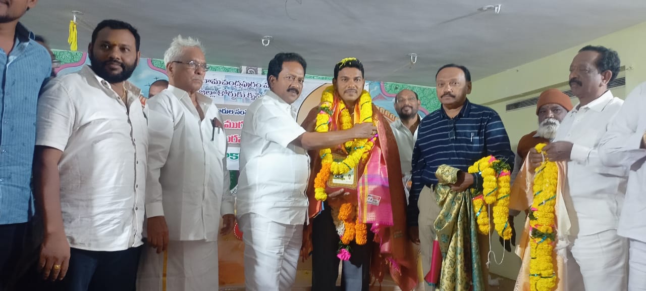 రామచంద్రపురం 18 డిసెంబర్, ప్రజా ఆయుధం ప్రతినిధి ::రామచంద్రపురం పట్టణానికి అదనపు జిల్లా కోర్టు రావడానికి ఎనలేని కృషి సల్పిన రామచంద్రపురం కోర్టుల సమూహం న్యాయవాదుల సంఘం అధ్యక్షులు అడ్వకేట్ పిల్లి మురళీమోహన్ వెంకట రమణ నేటి యువతకు ఆదర్శప్రాయుడని పలువురు వక్తలు ప్రశంసించారు. రామచంద్రపురం పట్టణ నాయి బ్రాహ్మణ సంఘం, అడ్వకేట్ పిల్లి మురళి అనునాయలు, సన్నిహితులు, మిత్రులు పట్టణంలో జిల్లా కోర్టు ఏర్పాటుకు బార్ అసోసియేషన్ అధ్యక్షునిగా పిల్లి మురళి చేసిన కృషిని, సేవలను గుర్తించి ఆయనను ఘనంగా సన్మానించారు. బుధవారం స్థానిక బలుసు కళ్యాణ మండపంలో అభినందన సభ ఏర్పాటు చేశారు. ఈ సందర్భంగా న్యాయవాది పిల్లి మురళిని పట్టణానికి చెందిన పలువురు ప్రముఖులు దుస్సాలువా తోను, పూలమాలలతోనూ ఘనంగా సన్మానించారు. పట్టణ ప్రముఖులు మేడిశెట్టి శేషారావు రాయుడు చంద్రరావు, కడలి రాంపండు తదితరులు న్యాయవాద వృత్తిలో అడ్వకేట్ పిల్లి మురళీమోహన్ వెంకటరమణ చేసే సేవలను కొనియాడారు. అలాగే రామచంద్రపురం వాసుల చిరకాల స్వప్నమైన జిల్లా కోర్టు ఏర్పాటులో విశేషమైన కృషి చేసిన మురళీమోహన్ వెంకటరమణకు పేదలు రుణపడి ఉంటారని పలువురు వక్తలు కితాబిచ్చారు. ఆధ్యాత్మిక రంగంలోనూ, సేవా రంగంలోనూ ముందుండే వ్యక్తి మురళి అని పలువురు కీర్తించారు. పేదలకు ఏ విధమైన ఫీజులు తీసుకోకుండానే వారిని అనేక కేసుల నుంచి బయటపడేసారని అన్నారు. ఇలాంటి న్యాయవాదిని కన్న తల్లిదండ్రులు చాలా గొప్పవారు అని వక్తలు గుర్తు చేశారు.మురళి మరిన్ని ఉన్నత శిఖరాలను అందుకోవాలని వారంతా ఆకాంక్షించారు. ఈ సభలో రామచంద్రపురం లో నూతనంగా ఏర్పడిన నియోజకవర్గం ఎలక్ట్రానిక్ మీడియా అధ్యక్షులు ఇళ్ల శ్రీ నాగరాజును సత్కరించారు. ఈ సందర్భంగా సన్మాన గ్రహీత న్యాయవాది పిల్లి మురళీమోహన్ వెంకటరమణ మాట్లాడారు. తన గురువైన మేడిశెట్టి శేషారావు, అలాగే న్యాయవాద గురువైన పూజ్యులు సీనియర్ అడ్వకేట్ బుచ్చిరాజు వారి నిర్దేశికత్వంలో తాను ఈ స్థాయికి వచ్చానని గర్వంగా తెలిపారు. తనపై ఉంచిన అభిమానానికి ఆహుతులు అందరికీ కృతజ్ఞతలని మురళి తెలిపారు. ఈ కార్యక్రమంలో విశ్రాంత న్యాయశాఖ ఉద్యోగి దొమ్మేటి సుధాకర్ రావు, కట్టా సూర్యనారాయణ, వాసంశెట్టి శ్యామ్, కంచి సత్యానందం, భానోదయ స్కూల్ అధినేత వాసంశెట్టి లక్ష్మీనారాయణ, మేడిశెట్టి సూర్యనారాయణ, గుబ్బల సూరిబాబు, డాక్టర్ కొప్పిశెట్టి సత్యనారాయణ, చినబాబు, కె. సురేంద్ర త్రిపాటి తదితరులు పాల్గొన్నారు.