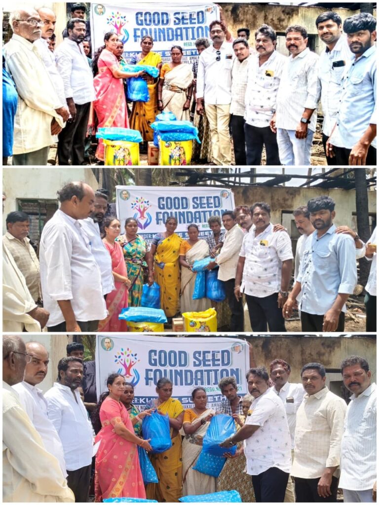 డాక్టర్ బి ఆర్ అంబేద్కర్ కోనసీమ జిల్లా కలెక్టర్ అమలాపురం కామనగరువు పంచాయతీ జంగంపాలెంలో ఆదివారం జరిగిన అగ్ని ప్రమాదంలో తాటాకిళ్లు పూర్తిగా దగ్దమై బాధితులు కట్టుబట్టలతో మిగిలారు.అగ్ని ప్రమాదంలో వాసంశెట్టి పెద్దిరాజు,కుంచే శాంతమ్మ కుటుంబాలు సర్వం కోల్పోయి నిరాశ్రయులు అయ్యారు.విషయం తెలుసుకున్న అమలాపురం నియోజకవర్గ వైఎస్సార్ సిపి సీనియర్ నాయకులు,గుడ్ సీడ్ ఫౌండేషన్ వ్యవస్థాపకులు కుంచే రమణారావు అగ్ని ప్రమాద బాధిత కుటుంబాలకు సాయం అందించారు.సోమవారం బాధిత కుటుంబాలకు సర్పంచ్ నక్కా అరుణకుమారి చంద్రశేఖర్ చేతులమీదుగా బియ్యం,వంట సామాగ్రి,నిత్యావసరాలు,దుస్తులను గుడ్ సీడ్ ఫౌండేషన్ సభ్యులు అందజేశారు.సాయం అందించిన రమణారావుకు బాధిత కుటుంబాలు కృతజ్ఞతలు తెలిపారు.మాజీ సర్పంచ్ నక్కా సంపత్ కుమార్ గ్రామ పెద్దలు చొల్లంగి శ్రీనివాస్,పెద్దింశెట్టి ప్రకాష్,కొప్పిశెట్టి వీరంశెట్టి,కుంచే మోహన్,మెండి ప్రసాద్,ఫౌండేషన్ సభ్యులు పందిరి సుబ్బరాజు,నేరేడుమిల్లి శ్రీనివాస రావు,గంటా లక్ష్మీ ప్రసాద్,కుంచే అర్జున్,పరమట రాజేష్,నెల్లి ప్రసాద్,కుంచే రాజు,పరమట మురళీ కృష్ణ,పరమట నాగరాజు, ముత్తాబత్తుల గణేష్,బల్లా చిన రాజా,విప్పర్తి రమేష్ పాల్గొన్నారు.