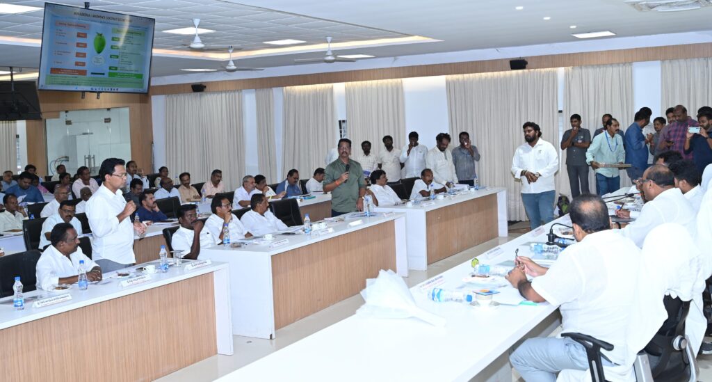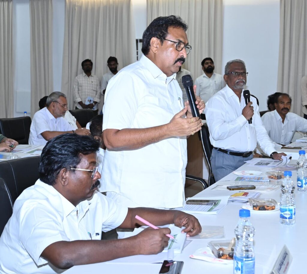కోకోనట్ బోర్డుల కార్యాలయాలు స్థాని కంగా ఏర్పాటు చేసేం దుకు చర్యలు చేపడ తామని తద్వారా కొబ్బరి పరిశ్రమ ల ఏర్పాటుకు సౌలభ్యం ఏర్పడుతుం దన్నారు. ఏడు ఫిషింగ్ ల్యాండ్ సెంటర్లు అభి వృద్ధికి చర్యలు తీసుకుం టామన్నారు. తుఫాన్లు వరదలు సమయంలో పశువులకు పశుగ్రాస కొరత ఏర్పడకుండా వరిగడ్డిని సేకరించేందుకు చర్యలు తీసుకోవాలని పశువులకు అవసరమైన మందులు ఆన్లైన్ లో ఇండెంట్ పెడితే సరఫరా చేయడం జరుగుతుంద న్నారు. జలవనరుల శాఖ సమీక్షలో సుదీర్ఘకాలంగా కాలువలు డ్రైనేజీలలో పూడికతీతలు పనులు సంబంధించి ఎమ్మెల్యేలు అధికారులు సమన్వ యంతో ప్రాధాన్యత క్రమంలో ఆమోదయోగ్య మైన పనులు ప్రతి పాదిస్తే నిధులు సమీకరణకు పై స్థాయిలో చర్యలు చేపడ తానని తెలిపారు.