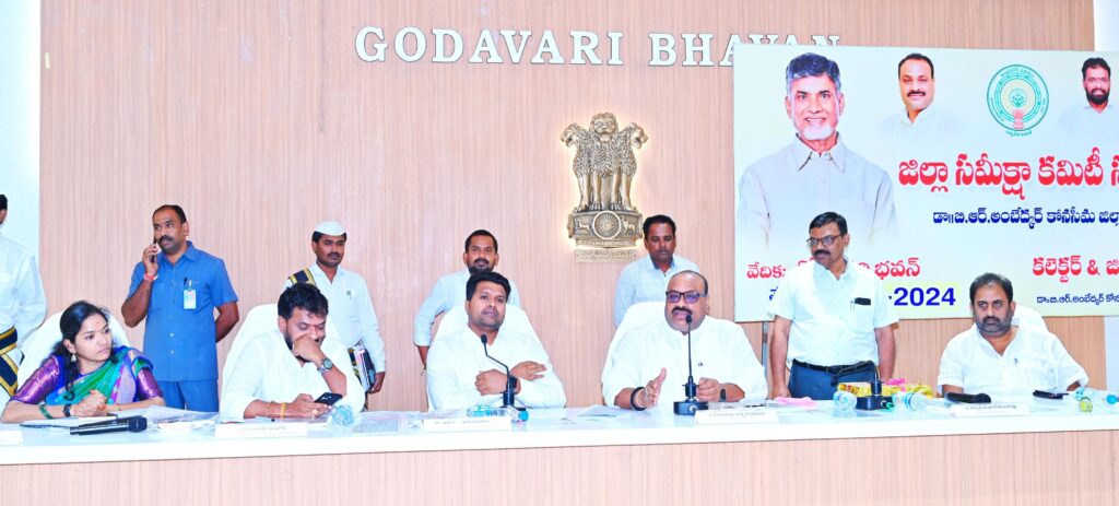 డాక్టర్ బి.ఆర్ అంబే ద్కర్ కోనసీమ జిల్లా సర్వతోముఖాభివృద్ధికి ప్రజాప్రతినిధులు, అధి కారులు పూర్తి సమన్వయంతో పనిచేయాలని జిల్లా ఇన్చార్జి మరియు వ్యవసాయ సహకార, మార్కెటింగ్ పశుసంవర్ధక డైయిరీ డెవలప్మెంట్, మత్స్యశాఖల మంత్రి కింజరాపు అచ్చెన్ననాయుడు పిలుపు నిచ్చారు. బుధవారం స్థానిక డాక్టర్ బి ఆర్ అంబేద్కర్ కోనసీమ జిల్లా కలెక్టరేట్ నందు జిల్లా సమీక్ష కమిటీ సమావేశం నిర్వహించారు.