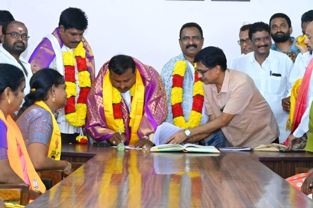 కార్యవర్గాన్ని శాలువాలతో సన్మానించారు. ఈ సందర్భంగా శాసనసభ్యుడు గిడ్డి మాట్లాడుతూ.. మార్కెట్ కమిటీ కార్యవర్గ నియామకం పూర్తిగా నిబంధనలకు లోబడి అన్ని సామాజిక వర్గాలకు న్యాయం జరిగేలా చేపట్టామన్నారు.గత ప్రభుత్వ హయాంలో కంటే మార్కెట్ కమిటీ అభివృద్ధి చెందే విధంగా కార్యాచరణ చేపడతామన్నారు.ఈ సందర్భంగా ఎమ్మెల్యే మరియు కమిటీ గౌరవ అధ్యక్షుడు గిడ్డి నూతన కార్యవర్గానికి శుభాకాంక్షలు తెలిపారు.