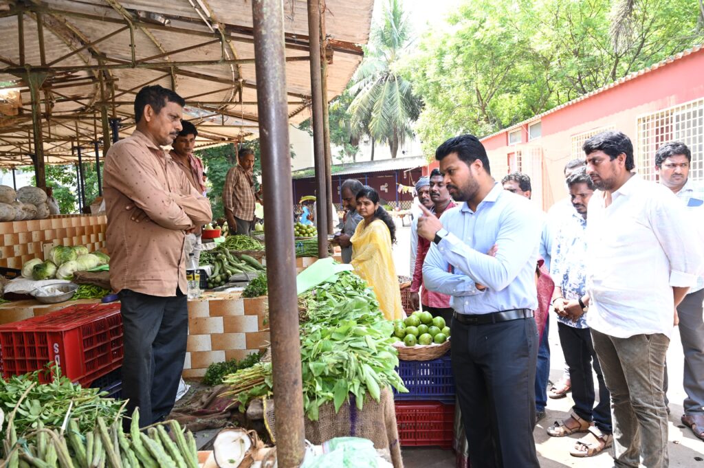 స్వచ్ఛ ఆంధ్ర కార్యక్రమం కేవలం ఒక రోజు కార్యాచరణ కాదనీ, ఇది మంచి ఆలోచన తో జీవనశైలిలో మార్పుకు నాంది పలుకు తుందన్నారు ఈ కార్యక్రమాన్ని ప్రతీ ఒక్కరూ మన స్ఫూర్తిగా స్వీకరించి, స్వర్ణాంధ్ర లక్ష్య సాధనలో భాగస్వాముల వ్వాలని ఆకాంక్షించారు. ప్లాస్టిక్ కాలుష్య నియంత్రణపై విస్తృత ప్రచారం గావించడంతోపాటు వివిధ పరిశుభ్రత అంశాలను ప్రామాణికంగా తీసుకుని ప్రతిష్టాత్మకంగా ప్రతి నెలా మూడో శనివారం స్వర్ణాంధ్ర స్వచ్ఛ ఆంధ్ర కార్యక్రమం నిర్వహించాలని ప్రభుత్వం ఆదేశించిందనీ. ప్రతి ప్రాంతాన్ని పరిశుభ్రంగా ఉంచడమే లక్ష్య మని ఇందులో ప్రతి పౌరుడు భాగస్వామి అయ్యేలా చూ డాల్సిన బాధ్యత అందరిపై ఉంద న్నారు. ప్రతి ఒక్కరూ ప్లాస్టిక్ కు బదులు ఇతర ప్రత్యా మ్నాయ సంచులను తప్పని సరిగా వినియోగించి ప్లాస్టిక్ కాలు ష్యాన్ని నియం త్రించాలన్నారు కూరగాయలు పండించే రైతులకు సరసమైన గిట్టు బాటు ధరలు లభించడం తోపాటు వినియోగదారుల కు తాజాగా అందుబాటు ధరలలో కూరగా యల విక్రయించాలని సంక ల్పంతో రాష్ట్ర ప్రభుత్వం ప్రారం భించిన ఒక సామాజిక సేవా కార్యక్రమం రైతు బజారని వెల్లడించారు. రైతు బజార్ నందు రైతులతో ఆయన ముచ్చ టిస్తూ కూరగాయలు ఎక్కడ పండిస్తున్నారు ఏ సమయానికి రైతు బజార్ కి వస్తున్నది విక్రయ లావాదేవీలు రైతు బజార్ ఫంక్షన్ లపై ఆరా తీశారు. కూరగాయలు నిత్యవసర వస్తువుల నాణ్య తలను ఆయన స్వయంగా పరిశీలించారు రైతులు తమ ఉత్పత్తులను మధ్య వర్తుల ప్రమేయం లేకుండా నేరుగా వినియోగదారులకు విక్రయించ డంలో సహాయం చేయడం రైతు బజార్ యొక్క ప్రధాన ఉద్దేశ్య మన్నారు రైతు బజారును సాంప్రదాయ మార్కెటింగ్ మార్గంలో అటు ఉత్పత్తి దారులకు ఇటు వినియో గదారులకు మేలు జరిగేలా సమన్వయంతో నిర్వహించేలా ఎస్టేట్ అధికారి ప్రత్యేక చొరవ చూపాలన్నారు. ప్రతి షాప్ ముందు ధరల సూచిక పట్టికలను ప్రదర్శించాలన్నారు . ఈ కార్యక్రమంలో జిల్లా మార్కె టింగ్ శాఖ అధికారిని కే విశాలాక్షి, మున్సిపల్ కమిషనర్ నిర్మల్ కుమార్, ఎస్టేట్ అధికారి తదితరులు పాల్గొన్నారు.