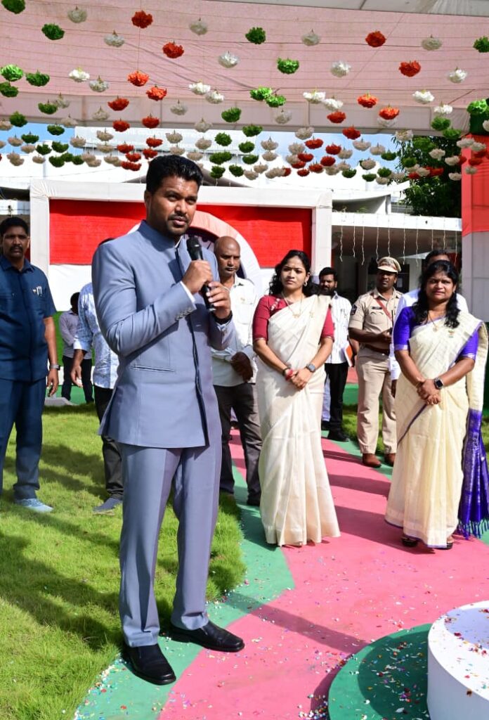 తొలుత కలెక్టరేట్ ప్రాంగణంలోని మహాత్మా గాంధీ అంబేద్కర్ కాంక్ష విగ్రహాలకు పూలమాలల లంకరించి శ్రద్ధాంజలి ఘటిం చారు ఈ సందర్భంగా జిల్లా కలెక్టర్ మాట్లాడుతూ ఈ వేడుక మనకు కేవలం ఒక జాతీ య సెలవు దినం కాదనీ, మన గతాన్ని గుర్తు చేసు కుంటూ, వర్తమానాన్ని అంచనా వేసు కుంటూ, భవిష్యత్తు కోసం ప్రణా ళిక లు రూపొందించుకునే ఒక గొప్ప అవకాశం,గతాన్ని స్మరించుకుంటూ స్వాతంత్ర్య సమరంలో పాల్గొన్న గాంధీజీ, నెహ్రూ, సుభాష్ చంద్రబోస్, భగత్ సింగ్, సర్దార్ పటేల్ వంటి ఎందరో గొప్ప నాయకులను మనం నేడు తప్పనిసరిగా స్మరించుకోవాలన్నారు.