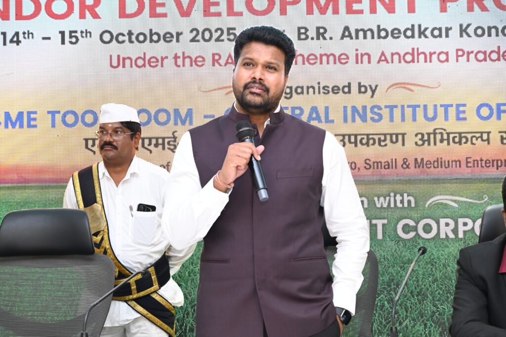డాక్టర్ బి.ఆర్ అంబేద్కర్ కోనసీమ జిల్లా కేంద్రం అమలాపురంలో జరిగిన వెండర్ డెవలప్మెంట్ ప్రోగ్రాం (విడిపి) విజయవంతమైందని డాక్టర్ బి ఆర్ అంబేద్కర్ కోనసీమ జిల్లా కలెక్టర్ ఆర్ మహేష్ కుమార్ తెలిపారు. అక్టోబర్ 14, 15 తేదీల్లో కలెక్టరేట్లో నిర్వ హించిన ఈ కార్యక్ర మంలో సుమారు 150 మంది కొను గోలు దారులు, అమ్మకం దారులు పాల్గొని సుహృ ద్భావ వాతావర ణంలో చర్చల ద్వారా అవగా హన పొందారని,జిల్లా కలెక్టర్ ఆర్. మహేష్ కుమార్ అన్నారు. ఈ సందర్భంగా ఆయన మాట్లాడుతూ, విడిపి ప్రోగ్రాం భారత ప్రభుత్వం పరిశ్రమల, వాణిజ్య శాఖ ఆధ్వర్యంలో చిన్న, సూక్ష్మ, మధ్యతరహా పరిశ్రమల అభివృద్ధి కోసం ఏర్పాటు చేయబడిందని తెలిపారు. జిల్లా కలెక్టర్ వివరించిన వివరాల ప్రకారం స్థానికంగా ఉన్న పరిశ్రమలను ప్రభుత్వ, ప్రైవేట్ సంస్థలతో అను సంధానించడం, స్థానిక ఉత్పత్తులకు మార్కెట్ దొరకేలా దోహదపడటం ప్రధాన లక్ష్య మని పేర్కొన్నారు.కొబ్బరి విలువ ఆధారిత ఉత్పత్తులు, కాయిర్, జూట్, ఫుడ్ ప్రాసెసింగ్ యూనిట్ల స్థాపనపై అవగాహన కల్పించబడిందన్నారు.ఈ కార్యక్రమం “ఒక జిల్లా – ఒక ఉత్పత్తి” పథకంతో అనుసం ధానంగా ఉండి, జిల్లా ఉత్పత్తుల మార్కె టింగ్, ఎగుమతులకు కొత్త మార్గాలు తెరిచిందని తెలి పారు.ఎంఎస్ఎమ్ఈలకు విదేశీ కంపెనీలతో మార్కె టింగ్ అవగాహన కల్పిస్తూ, గెయిల్ టెండర్లలో 25% అవకాశాలు చిన్న పరిశ్ర మలకు కేటాయిం చిన అంశంపై కూడా పవర్ ప్రెజెంటేషన్ ఇచ్చారు. స్థానిక శాసనసభ్యులు ఆనందరావు మాట్లాడుతూ, పర్యాటకం, గార్మెంట్స్ తయారీ, పాడి పరిశ్రమల అభివృద్ధికి మంచి అవ కాశాలు ఉన్నాయని పేర్కొన్నారు. ఔత్సాహిక పారిశ్రామికవేత్తలు ముం దుకు వస్తే ఏపీఐఐసీ (APIIC) మరియు సి ఎస్ ఆర్ ద్వారా అవసరమైన వసతులు కల్పించేందుకు రాష్ట్ర ప్రభుత్వం కృషి చేస్తుందని తెలిపారు. గెయిల్ వారి టెండర్లలో 25% ఎంఎస్ఎమ్ఈలకు ఇచ్చే విధానాలపై పవర్ పాయింట్ ప్రజెంటేషన్ ద్వారా అవగాహన కల్పిం చారన్నారు ఎం ఎస్ ఎం ఈ సపోర్టింగ్ అంశాలపై సమగ్ర అవగాహన పెంపొం దించా రన్నారుఈ కార్యక్ర మంలో వెండర్ డెవలప్మెం ట్ కార్పొరేషన్ సంప్రదింపు దారులు వేణు గోపాల్, ప్రతినిధి రమేష్ తదితరులు పాల్గొన్నారు.