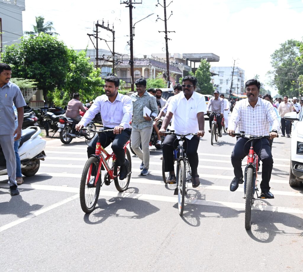 ఈ సైకిల్ ర్యాలీని అముడా చైర్మన్ అల్లాడ స్వామి నాయుడు హై స్కూల్ వద్ద జెండా ఊపి ప్రారంభించారు ఈ సందర్భంగా జిల్లా కలెక్టర్ మాట్లాడుతూ స్వచ్ఛాంధ్ర- స్వర్ణాంధ్రలో భాగంగా స్వచ్ఛమైన గాలి ఇతివృ త్తంతో చేపట్టి విజయ వంతం చేశార న్నారు అధి కారులు, సిబ్బంది ఇదే బాటలో నడిచి భావి తరాలకు భవిష్యత్తు లో స్వచ్ఛమైన గాలి రూపంలో వెలకట్టలేని సంపదను బహుమతిగా అందించ డంలో భాగస్వా ములు కావాలని కోరారు.