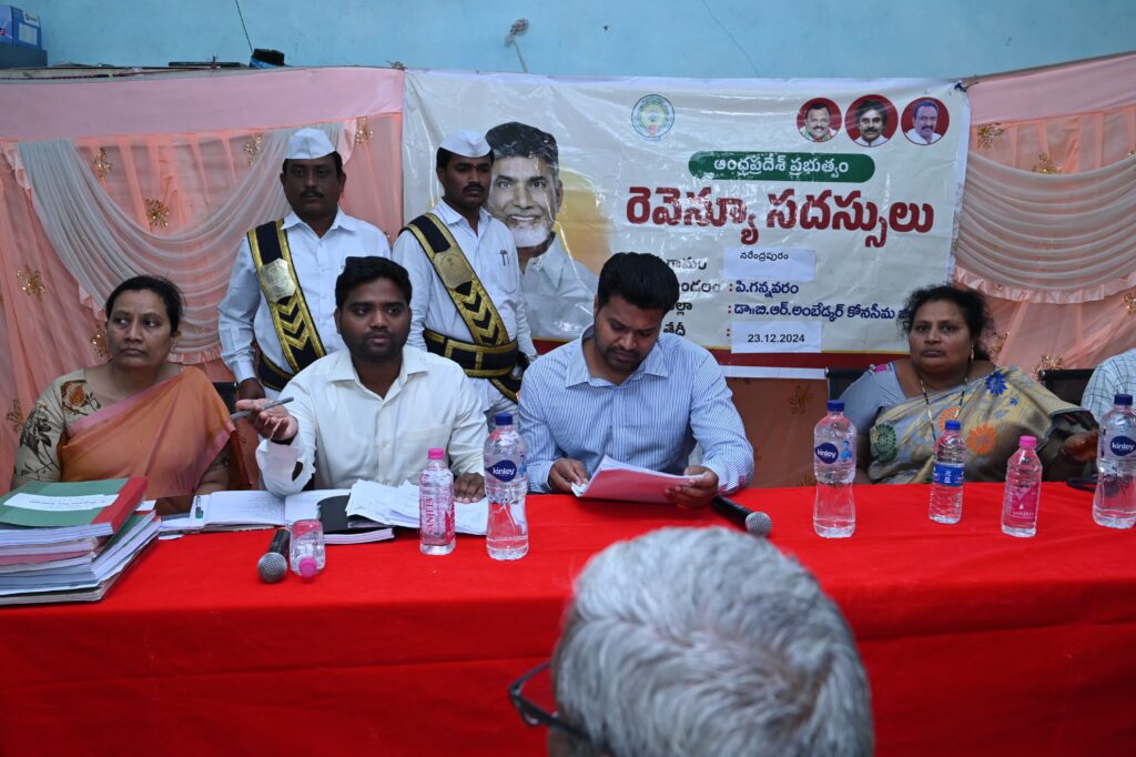 రాష్ట్ర ప్రభుత్వం ఎంతో ప్రతిష్టాత్మకంగా చేపట్టిన రెవిన్యూ సదస్సుల ద్వారా భూ వివాద సమస్యలను పూర్తిస్థాయిలో పరిష్కరించాలని జిల్లా కలెక్టర్ ఆర్ మహేష్ కుమార్ ఆదేశించారు. సోమవారం స్థానిక డాక్టర్ బి ఆర్ అంబేద్కర్ కోనసీమ జిల్లా పి.గన్నవరం మండల పరిధిలోని నరేంద్రపురం గ్రామంలో రెవెన్యూ సదస్సులో ఆయన ముఖ్యఅతిథిగా పాల్గొని ప్రసంగిస్తూ రెవెన్యూ వివాదాలు పరిష్కరించడంలో బాధ్యతారాహిత్యాన్ని ఎట్టి పరిస్థితులలోను సహించేది లేదని అధి కారులను హెచ్చరించారు. అధికారులు సిబ్బంది ఆలోచన ధోరణిలను మార్చుకొని అంకితభావాన్ని ఆచరణలో పెట్టడం ద్వారా సదస్సుల లక్ష్యా న్ని నెరవేర్చాలని స్పష్టం చేశారు. రెవెన్యూ సదస్సు ల లక్ష్యాన్ని అర్ధం చేసు కుని నిర్లక్ష్యానికి తావు లేకుండా రెవిన్యూ సిబ్బంది అంకితభావంతో పనిచే యాలన్నారు. తహశీల్దార్లు, ఆర్జీవోలు వీలున్నంతవరకు భూ తగాదాలు అక్కడికక్కడే పరిష్కారించాలని, పరిష్కారం కాని వాటిని ఉన్నతాధికారుల దృష్టికి తీసుకుని వెళ్లి నిర్దేశిత ప్రొసీజర్ ప్రకారం పరిష్కారాని కి చర్యలు చేపట్టాల న్నారు. సమస్యలు పరిష్కారంలో తప్పిపుచ్చుకొనే ధోరణి ప్రదర్శిస్తే శాఖాపరమైన చర్యలు తప్పవని తెలిపారు. నిర్దేశిత షెడ్యూల్ ప్రకారం తహశీల్దార్, రెవెన్యూ ఇన్స్పెక్టర్ విఆర్ఓ మండల సర్వేయర్, రిజిస్ట్రేషన్ డిపార్ట్మెంట్ ప్రతినిధితో పాటు అవసరం మేరకు అటవీ, దేవాదాయశాఖ అధికారులు సదస్సులకు హాజరై అందిన సమస్యలను సాధ్యమైనంత వరకు ఆదేరోజు పరిష్కరింరేం దుకు కృషి చేయాలన్నా రు. రెవెన్యూ సదస్సుల ద్వారా భూ సమస్యలకు చెక్ పెడుతూ శాశ్వత పరిష్కారం అందించడమే ప్రభుత్వ ప్రధాన ఉద్దేశమన్నారు. గ్రామసభ వద్ద ఏర్పాటు చేసిన ఆర్టీల నమోదు కౌంటర్, రెవెన్యూ రికార్డుల కౌంటర్, రెవెన్యూ శాశ్వత రికార్డుల కౌంటర్లను కలెక్టర్ పరిశీలించారు. గ్రామ సభలో భూ సమస్యలపై వచ్చిన అర్జీలను స్వీకరించారు పిజిఆర్ఎస్ కార్యక్రమం లో ప్రజల నుంచి వస్తున్న విన తుల్లో ఎక్కువ భాగం భూ సమస్య లేనని కావున ప్రతి ఒక్కరూ తమ భూముల రికా ర్డులను ఒకసారి పరిశీలించు కోవాల్సిన అవసరం ఉంద న్నారు. ప్రజలు ఎదుర్కొం టున్న భూ సమస్యలను శాశ్వతంగా పరిష్కరిం చడానికి ప్రభుత్వం రెవెన్యూ సదస్సులకు శ్రీకారం చుట్టిం దన్నారు దీర్ఘకాలంగా అపరి ష్కృతంగా ఉన్న భూసమ స్యలు, వివాదాల పరిష్కార మే అజెండాగా రెవెన్యూ సద స్సులు నిర్వహించాలన్నారు రెవెన్యూ సదస్సులలో పూర్తిస్థాయిలో భాగస్వా మ్యులు కావాలన్నారు.